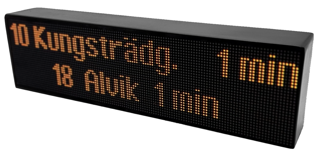 Vi på T-Skylt är stolta över att erbjuda en unik digital skärm som håller dig uppdaterad om lokaltrafikens avgångar.